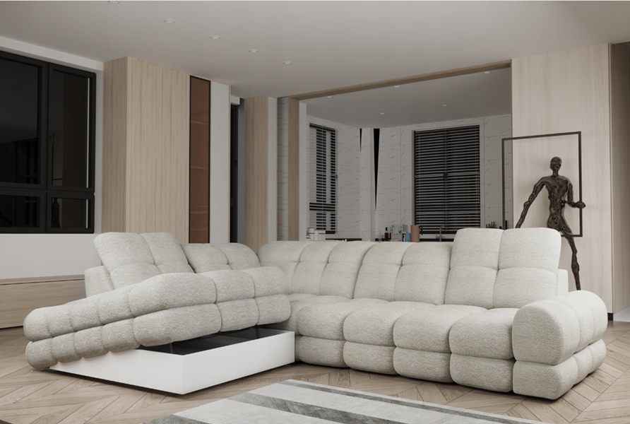 Coltar cu reglaj electric TOLLO L cu lada pentru depozitare, tetiere reblabile, personalizabil 302x217cm