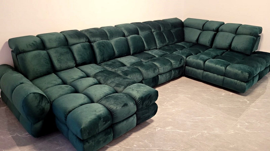 Coltar cu reglaj electric TOLLO XL cu lada pentru depozitare, tetiere reglabile, personalizabil 400x217x171cm