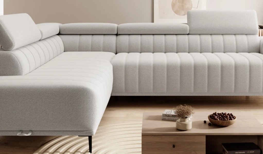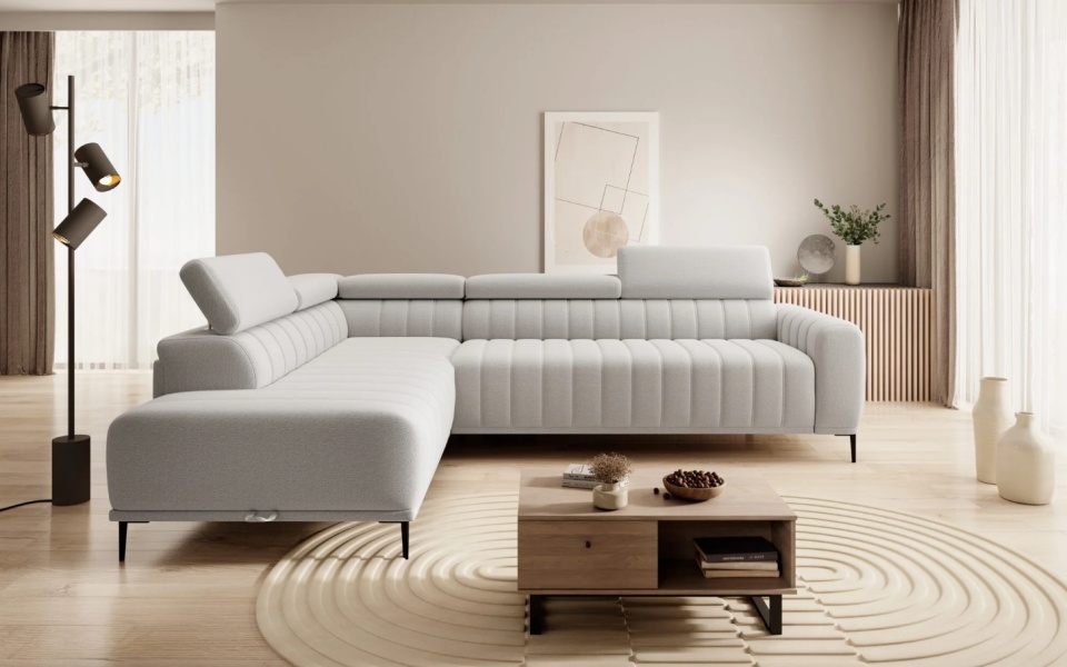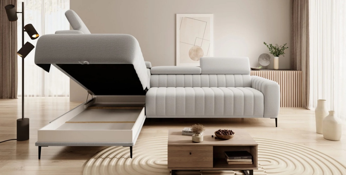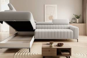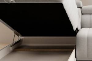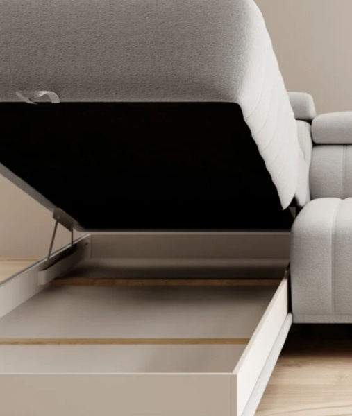 Coltar extensibil (120cm) GANDI cu lada pentru depozitare, tetiere reglabile, personalizabil 261x204cm