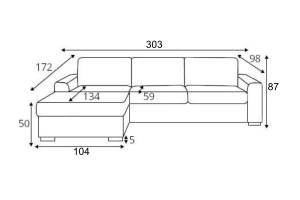 Coltar extensibil (160cm) VANILLA cu lada pentru depozitare, personalizabil 303x173cm