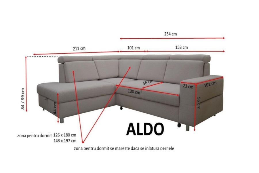 Suprafata de dormit: 180 / 126 cm