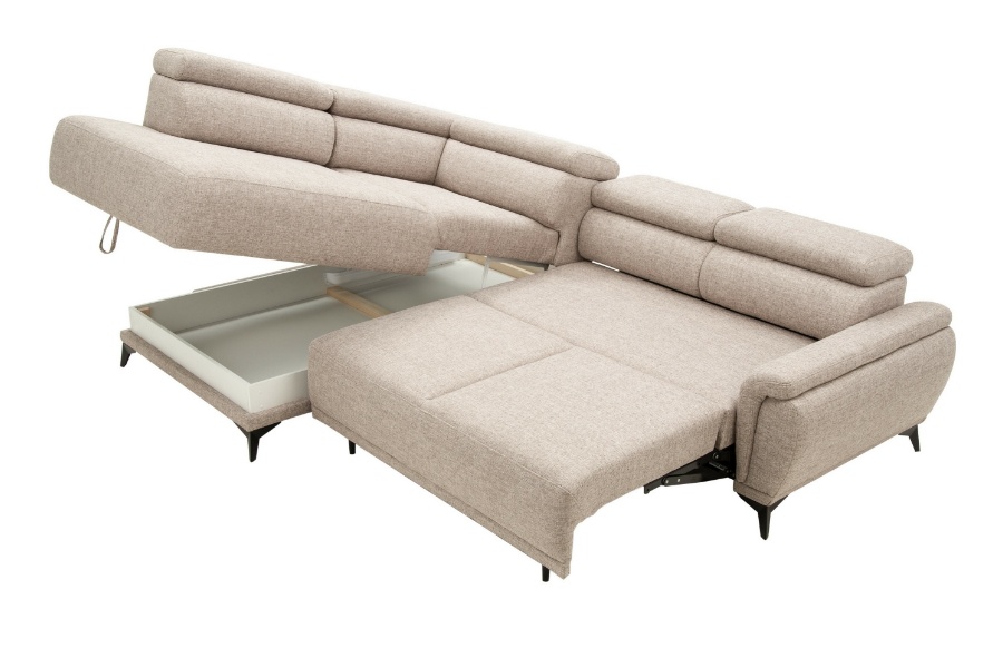 Coltar extensibil ATLANTA cu lada pentru depozitare, tetiere reglabile, personalizabil 281x203cm