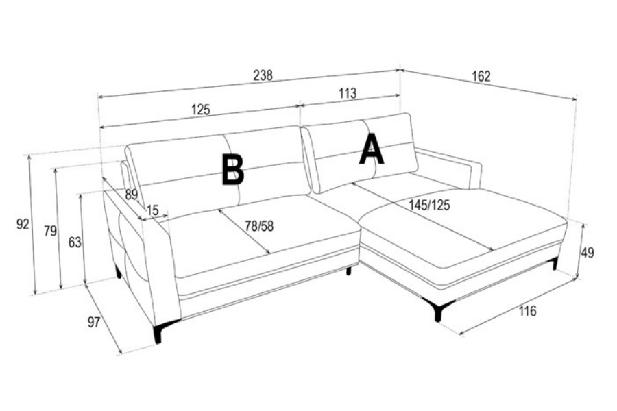 Adancime sezlong: 125 / 145 cm