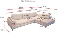 Coltar extensibil BOLOGNA cu lada pentru depozitare, personalizabil 314x211cm