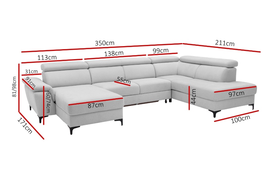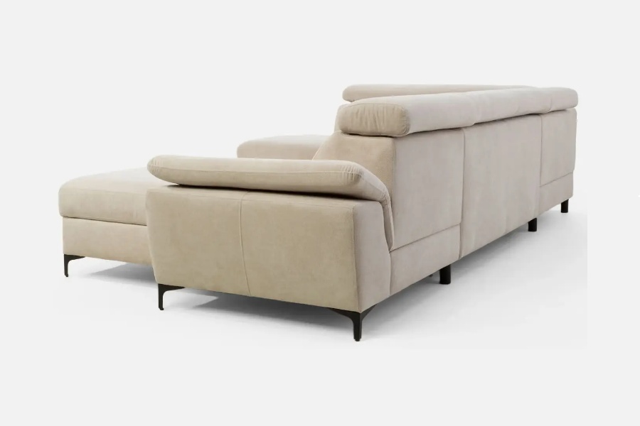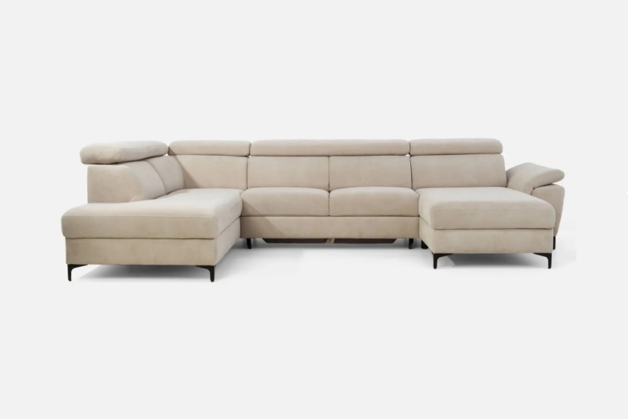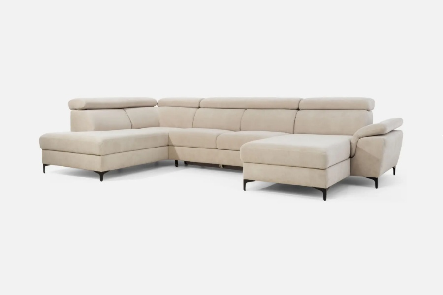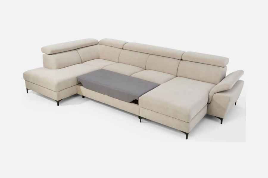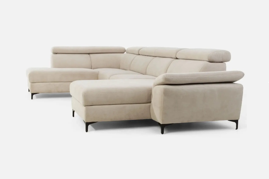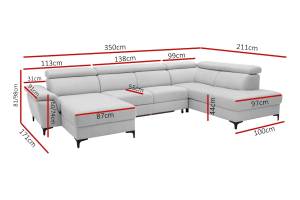 Coltar extensibil BRAGA U cu lada pentru depozitare, tetiere reglabile, personalizabil 211x350x171cm