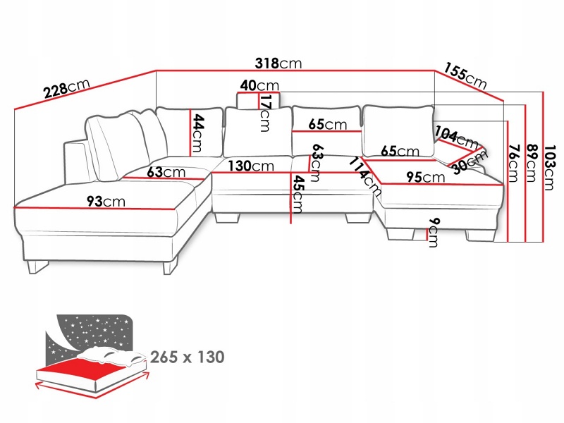 Alte caracteristici: cotiera reglabila, 6 perne mari - incluse