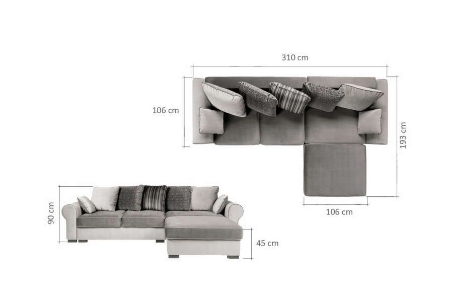 Alte caracteristici: coltarul este modular (sezlongul poate fi montat pe stanga sau pe dreapta), 5 perne - incluse