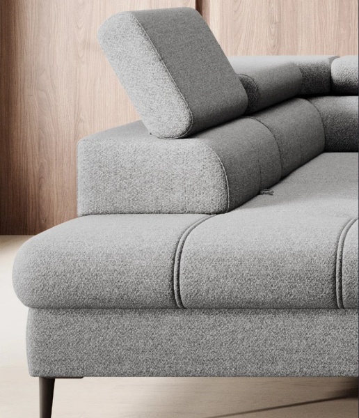 Coltar extensibil DENVER L cu lada pentru depozitare, tetiere reglabile, spatar reglabil, personalizabil 288x218cm