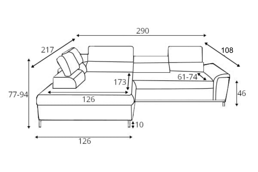 Latime sezlong: 126 cm