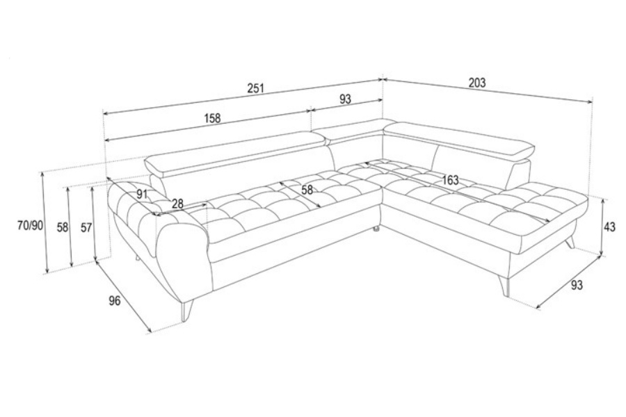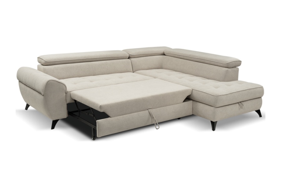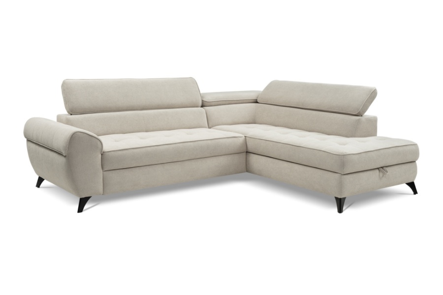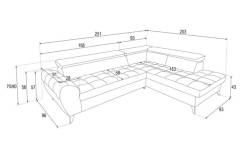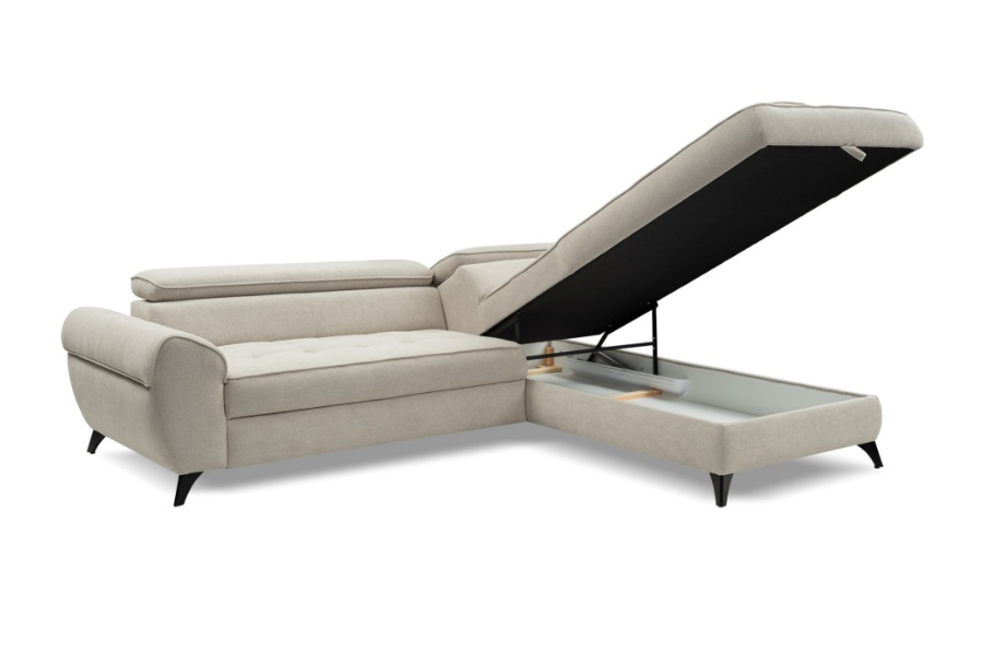 Coltar extensibil ELENA cu lada pentru depozitare, tetiere reglabile, personalizabil 251x203cm