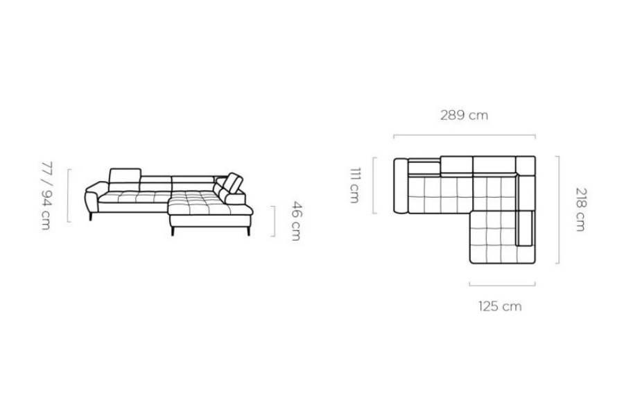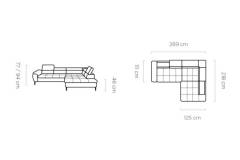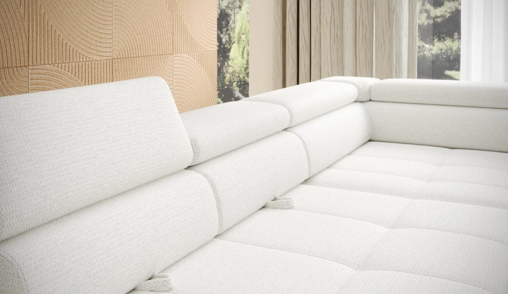 Coltar extensibil EMPOLI L cu lada pentru depozitare, tetiere reglabile, spatar reglabil, personalizabil 289x218cm