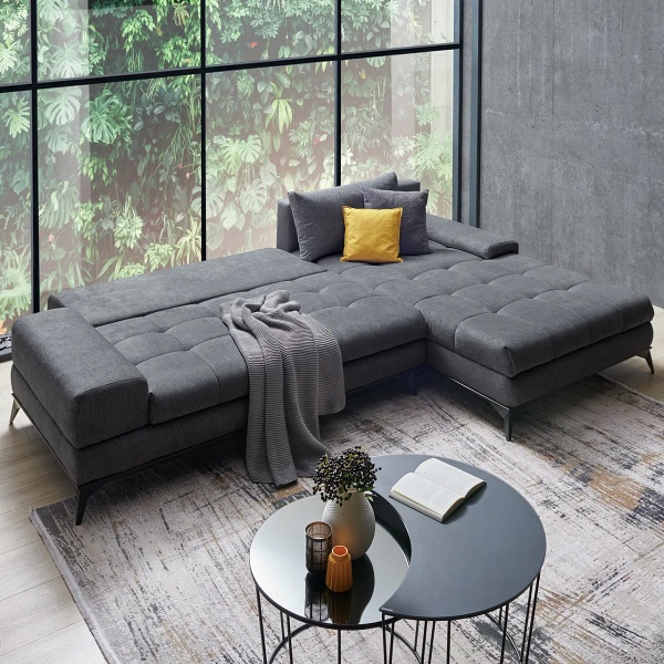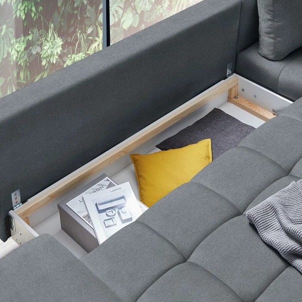 Coltar extensibil FIGARO cu lada pentru depozitare, personalizabil 315x212cm