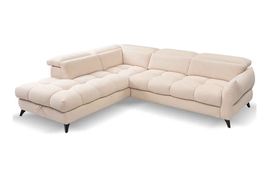 Coltar extensibil FUBU cu lada pentru depozitare, tetiere reglabile, personalizabil 263x234cm