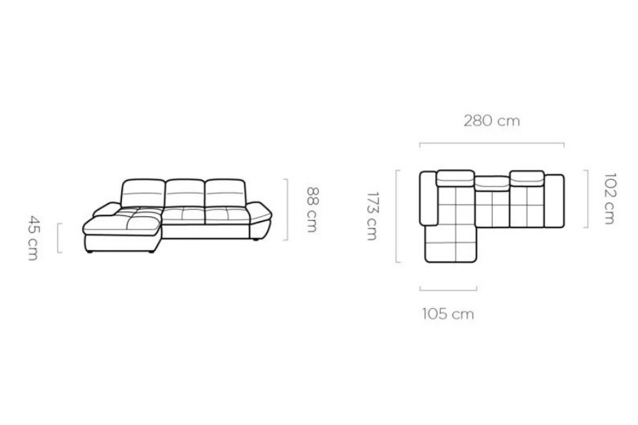 Coltar extensibil GALLIANO S cu lada pentru depozitare, spatar reglabil, personalizabil 280x173cm