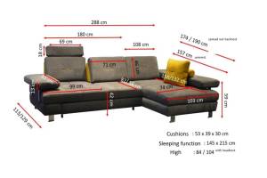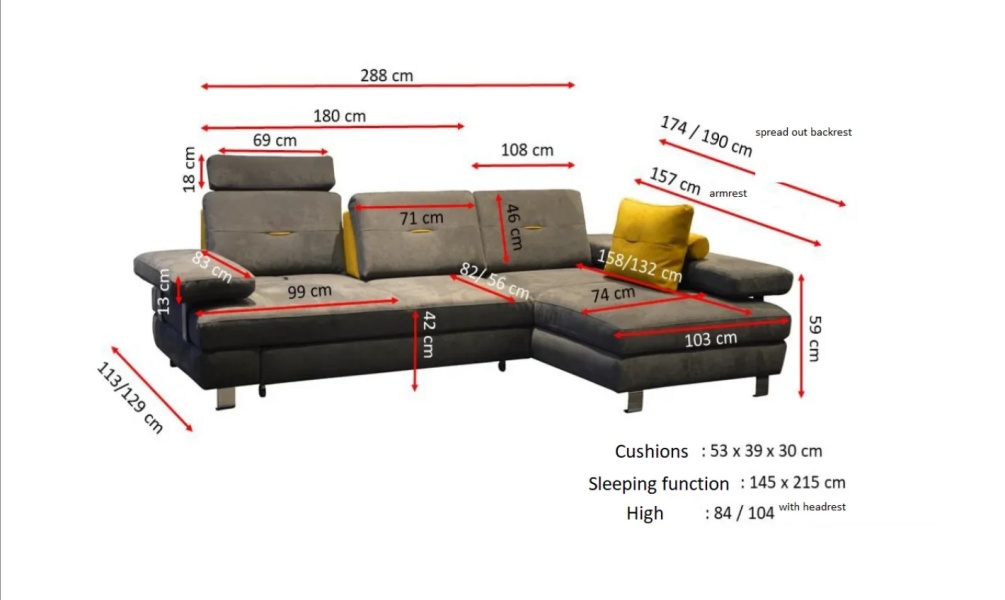 Latime totala: 174/ 190 cm