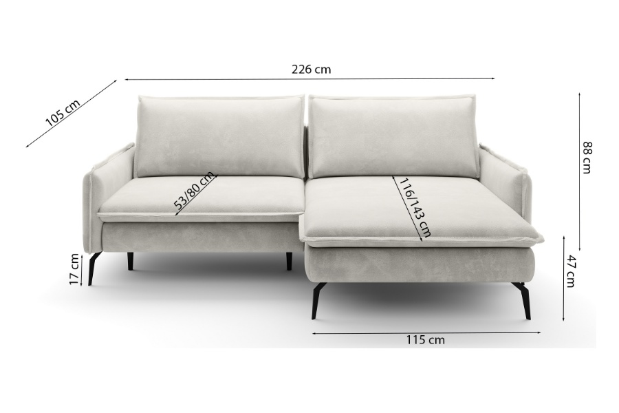 Coltar extensibil GLOSSY cu lada pentru depozitare, personalizabil 226x162cm