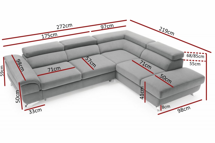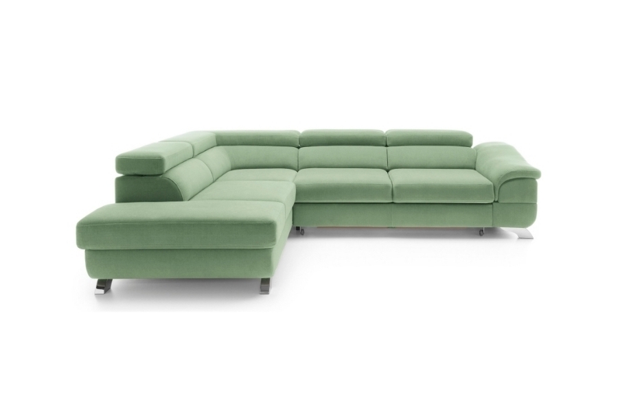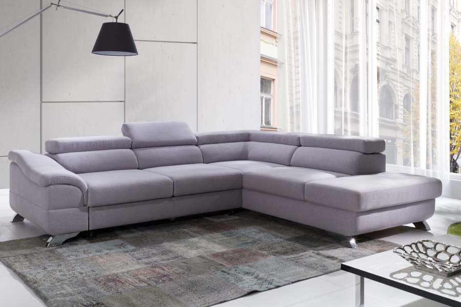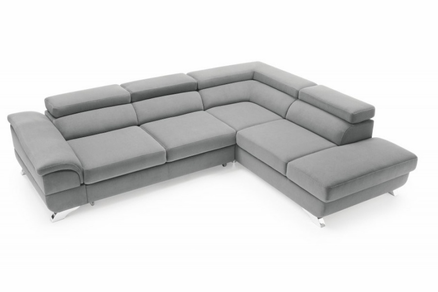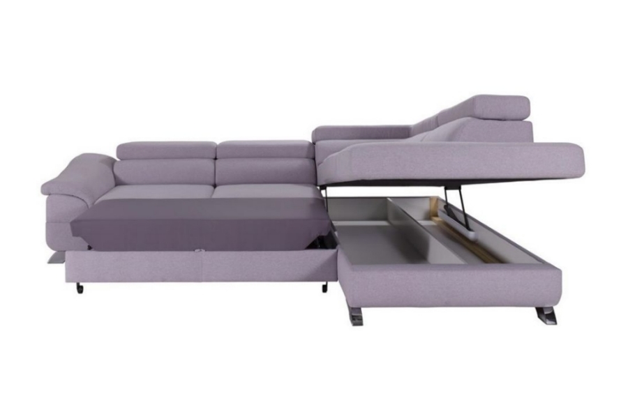 Coltar extensibil LAGOS X cu lada pentru depozitare, tetiere reglabile, personalizabil 272x219cm
