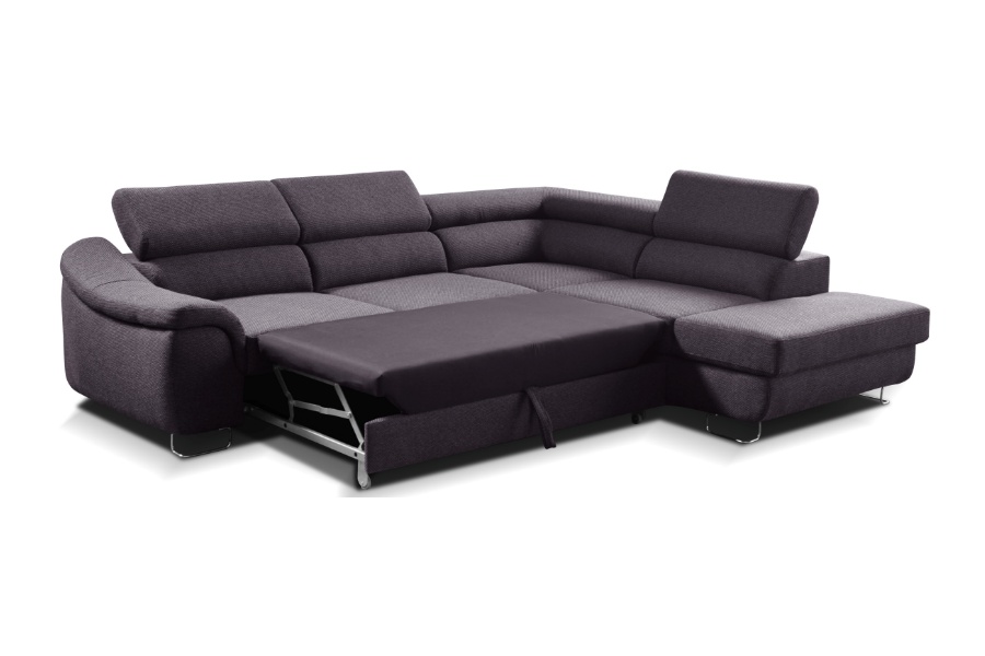 Coltar extensibil LAVOS L cu lada pentru depozitare, tetiere reglabile, personalizabil 272x219cm