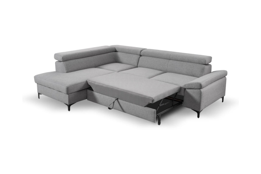 Coltar extensibil LONIGO cu lada pentru depozitare, tetiere reglabile, personalizabil 247x196cm