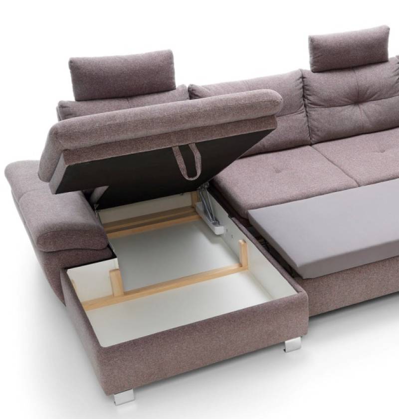Coltar extensibil MADEIRA MINI cu lada pentru depozitare, personalizabil 280x184cm