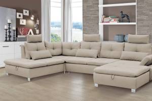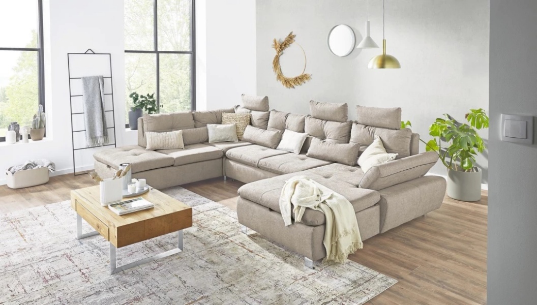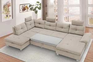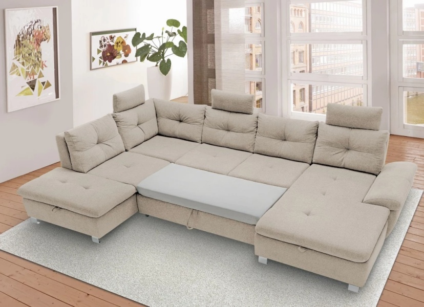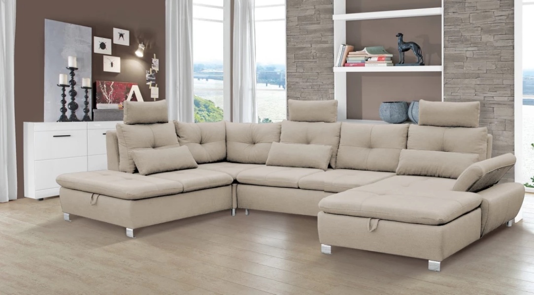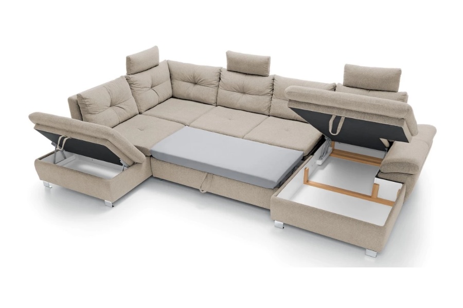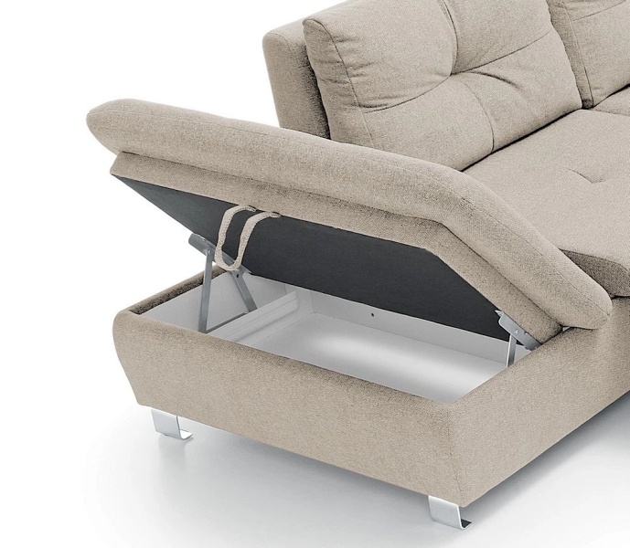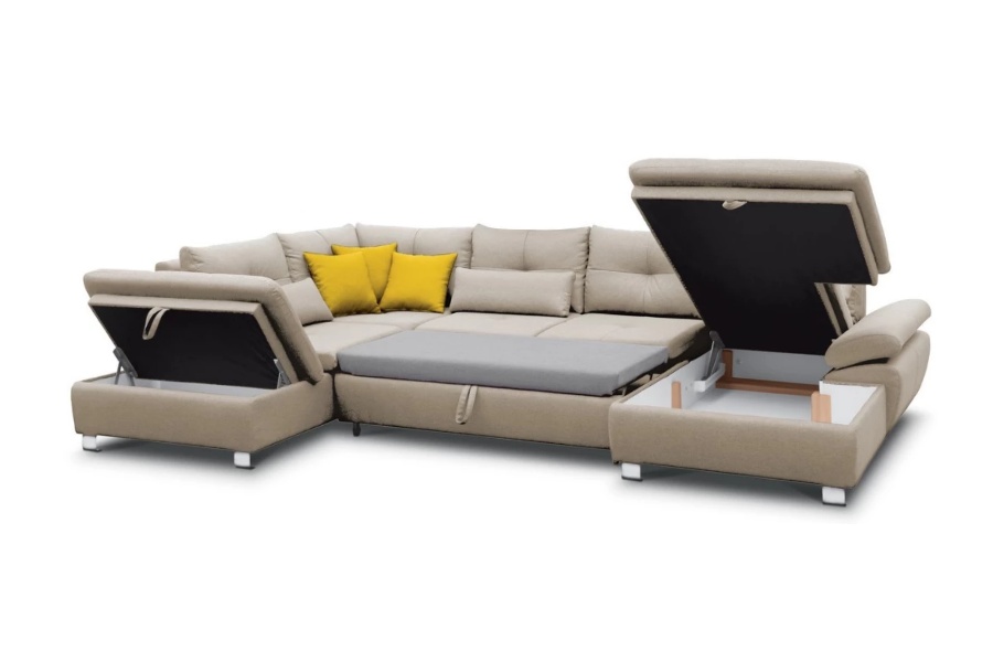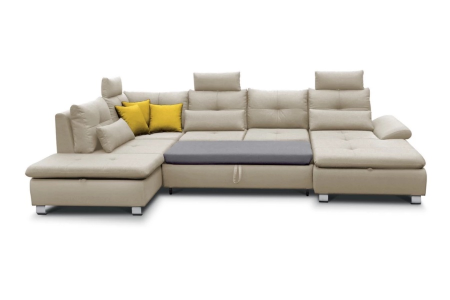 Coltar extensibil MADEIRA U cu lada pentru depozitare, personalizabil 350x235x184cm