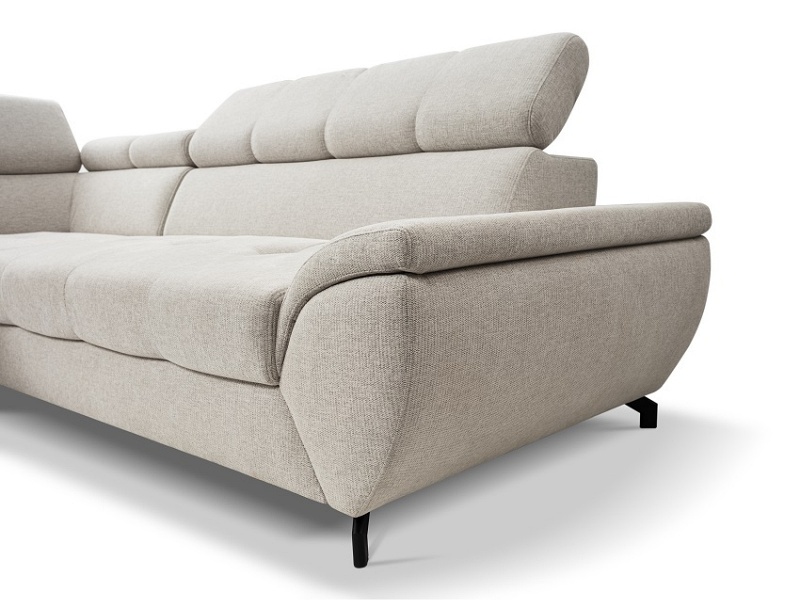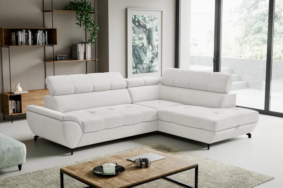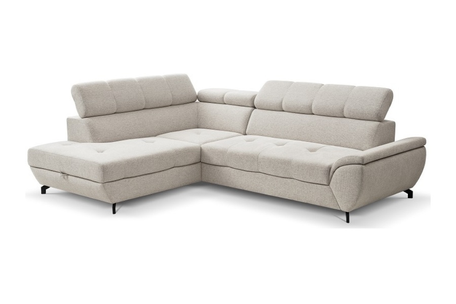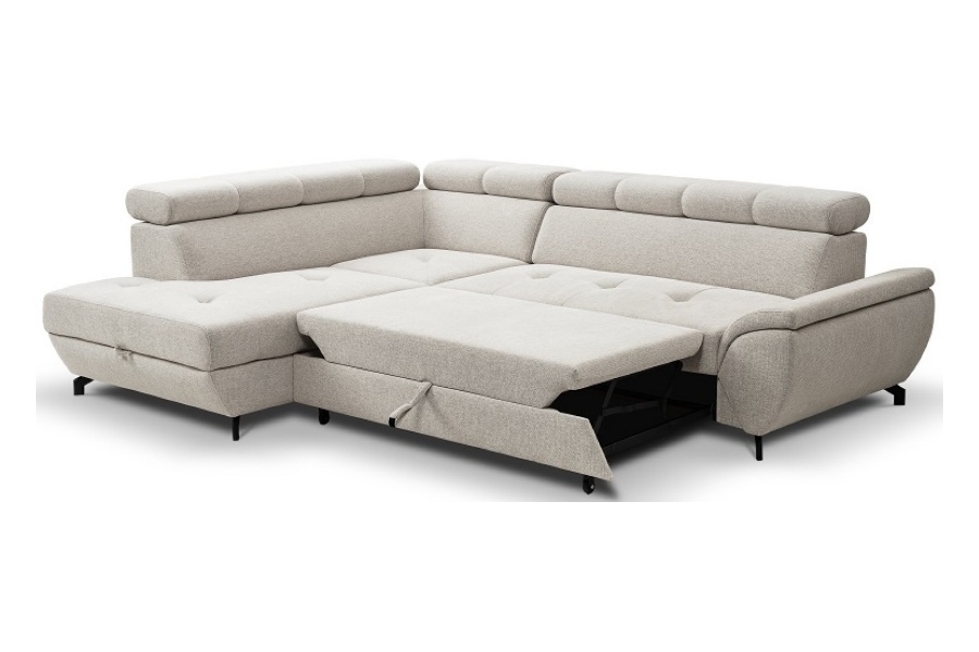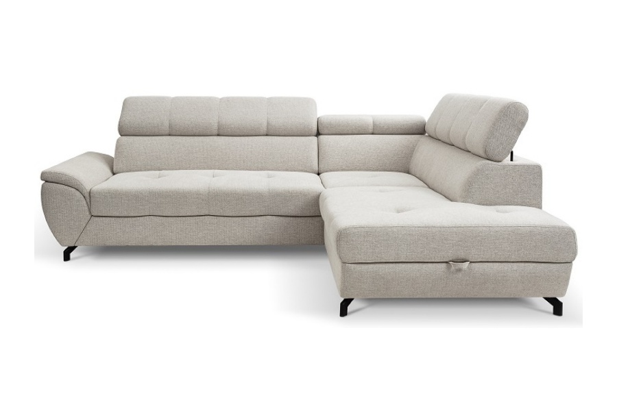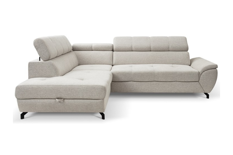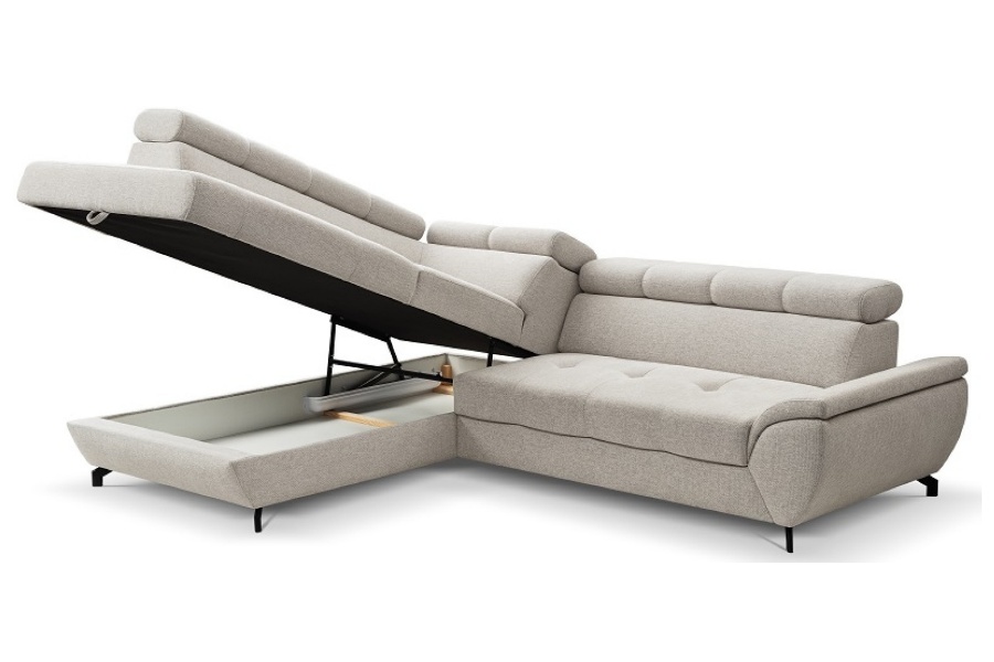 Coltar extensibil MARIO cu lada pentru depozitare, tetiere reglabile, personalizabil 263x210cm