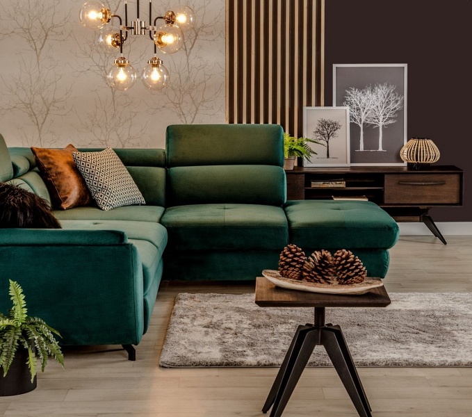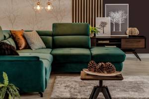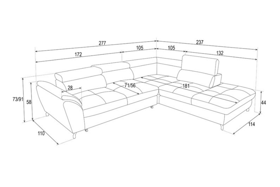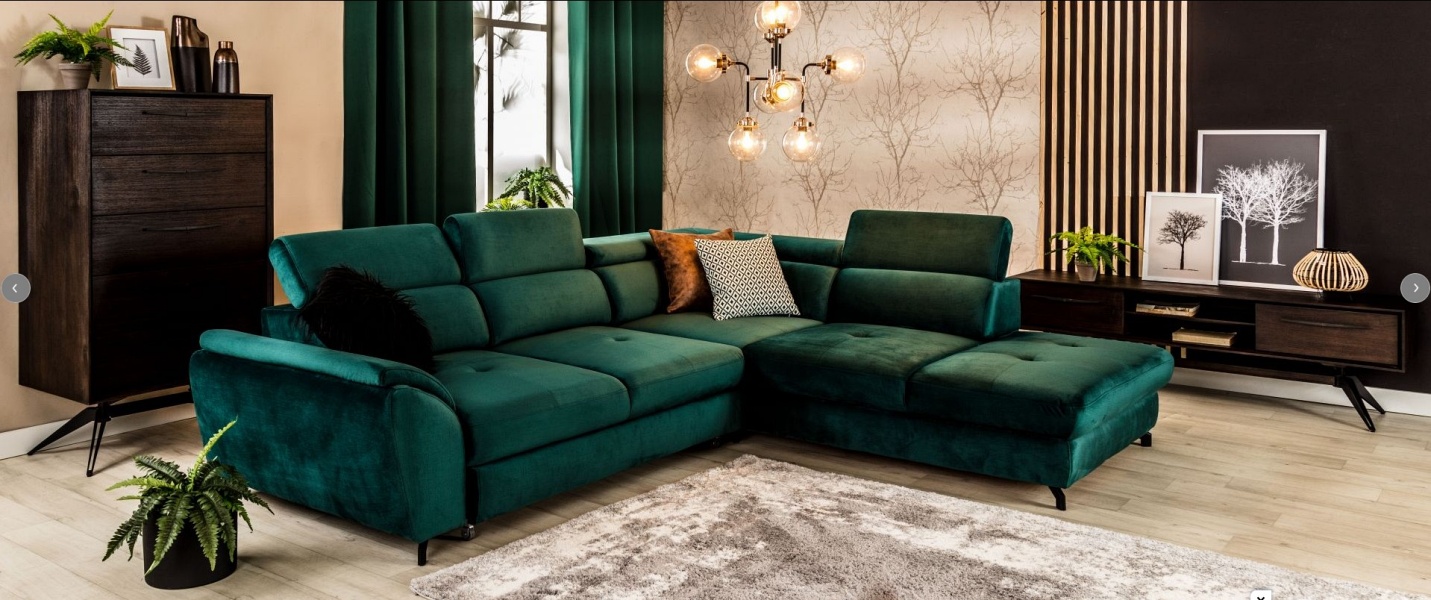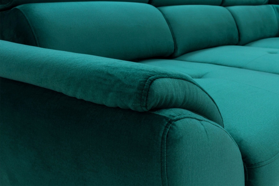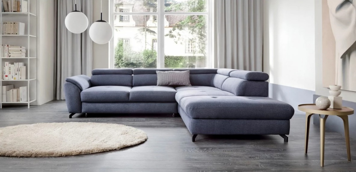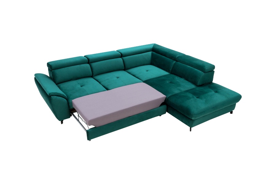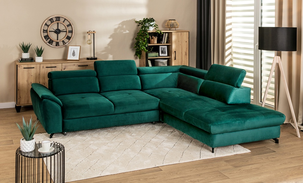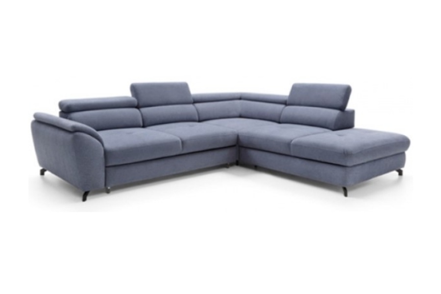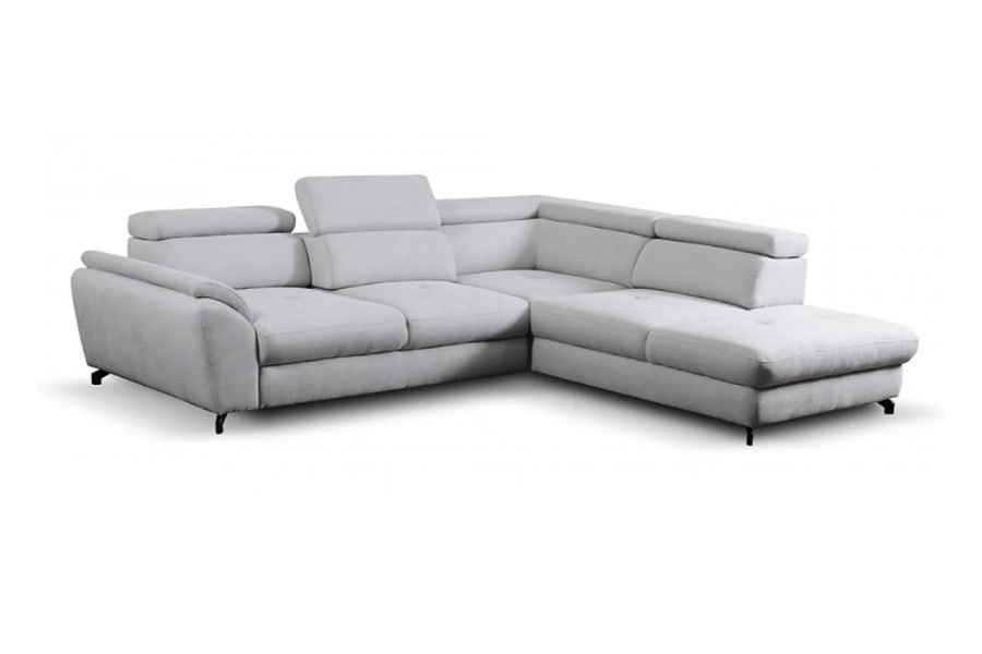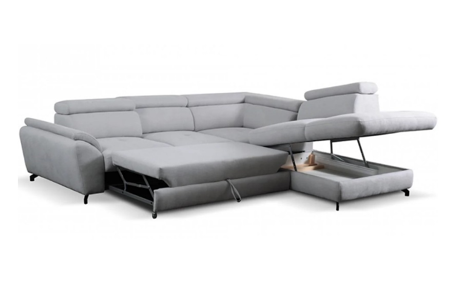 Coltar extensibil MAROLA L cu lada pentru depozitare, tetiere reglabile, personalizabil 277x237cm