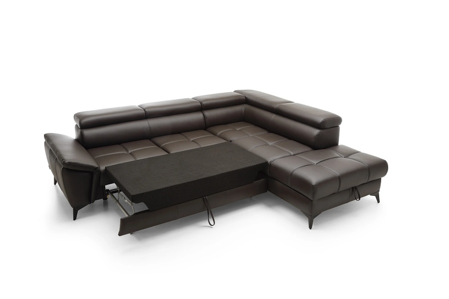 Coltar extensibil modern, cu tetiera reglabila, spatiu de depozitare tip lada si arcuri sinusoidale, perfect pentru confort si functionalitate. Coltar extensibil MOCCA, ideal pentru un living contemporan si elegant.