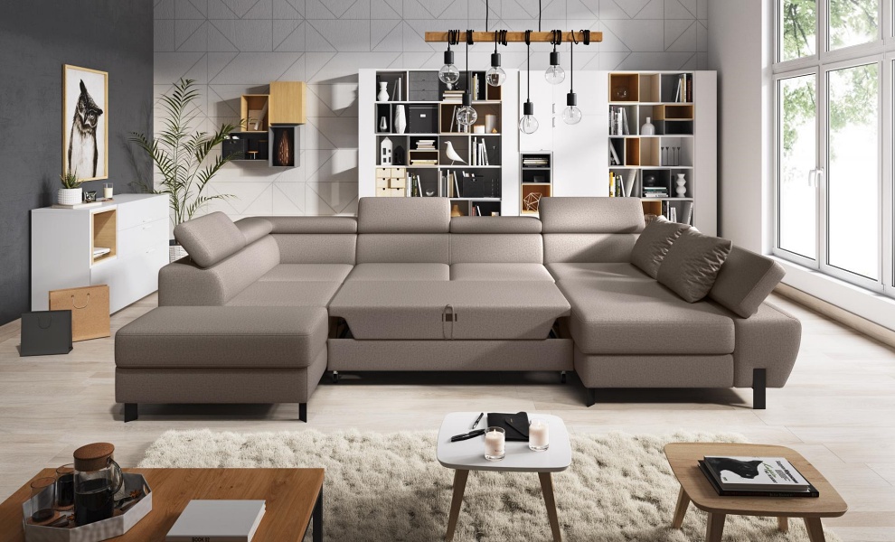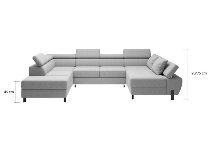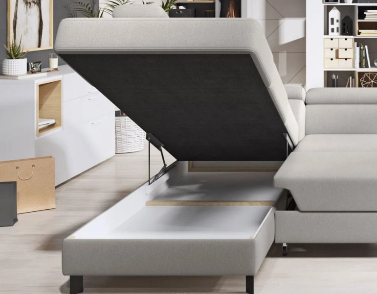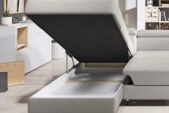 Alte caracteristici: tetiera reglabila, 2 perne - incluse, cotiere reglabile, lada pentru depozitare