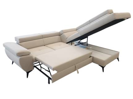 Coltar extensibil PAOLO reversibil, cu lada pentru depozitare, tetiere reglabile, spatar reglabil, personalizabil 292x201cm