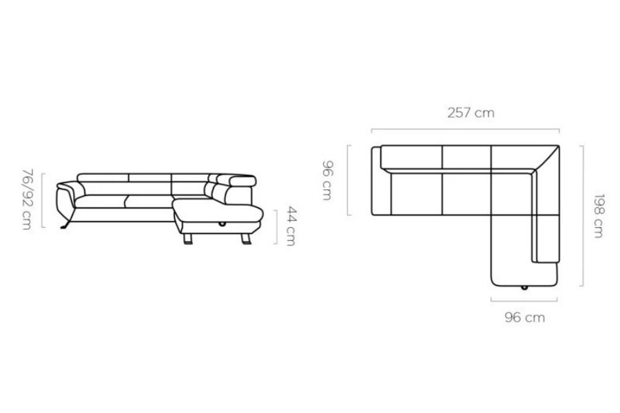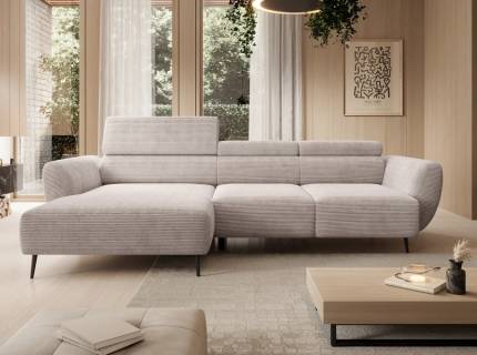 Coltar extensibil RAVEN L cu lada pentru depozitare, tetiere reglabile, personalizabil 257x198cm