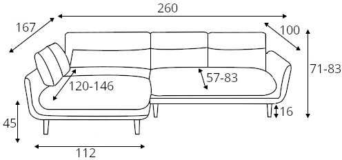 Latime sezlong: 167 cm