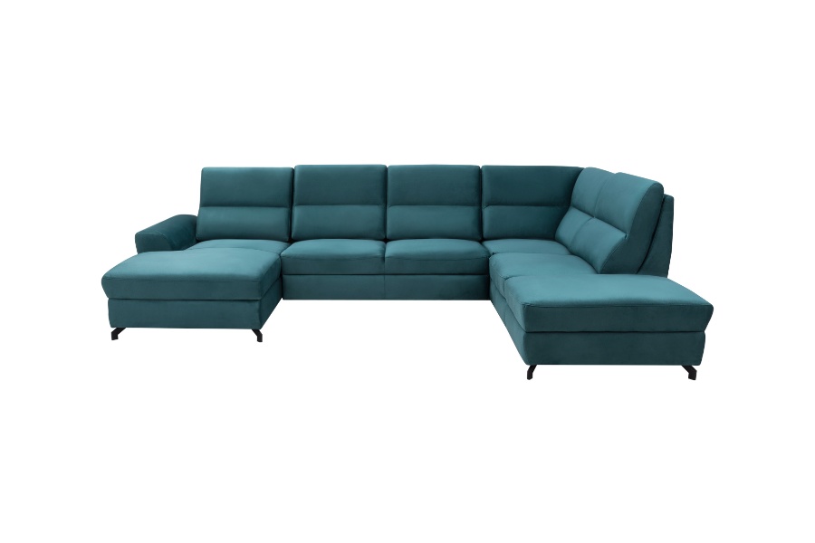 Coltar extensibil VALENCIA U cu lada pentru depozitare, personalizabil 231x341x173cm