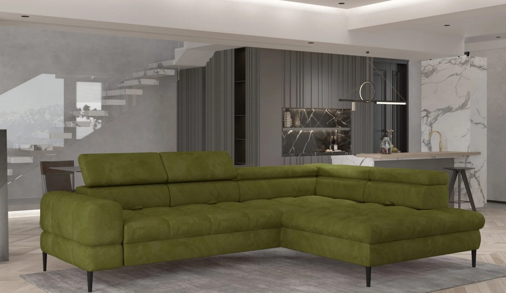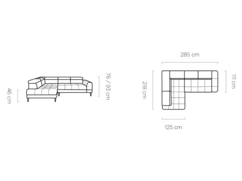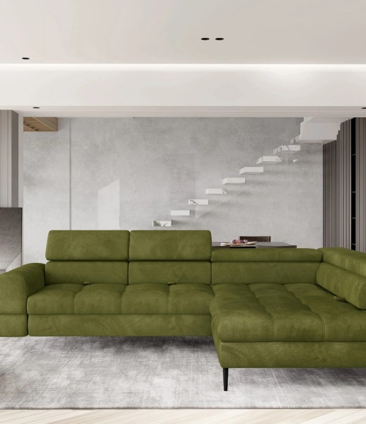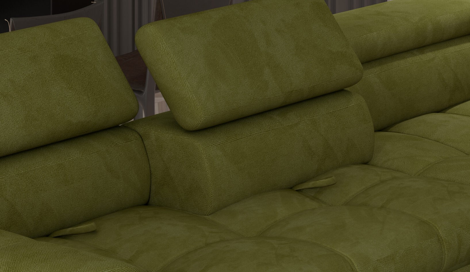 Coltar extensibil VOSS L cu lada pentru depozitare, tetiere reglabile, spatar reglabil, personalizabil 285x218cm
