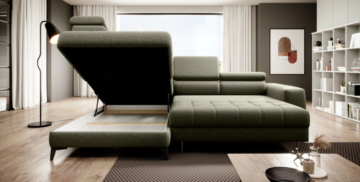 Coltar extensibila ASTOLA cu lada pentru depozitare, tetiere reglabile, personalizabil 280x193cm