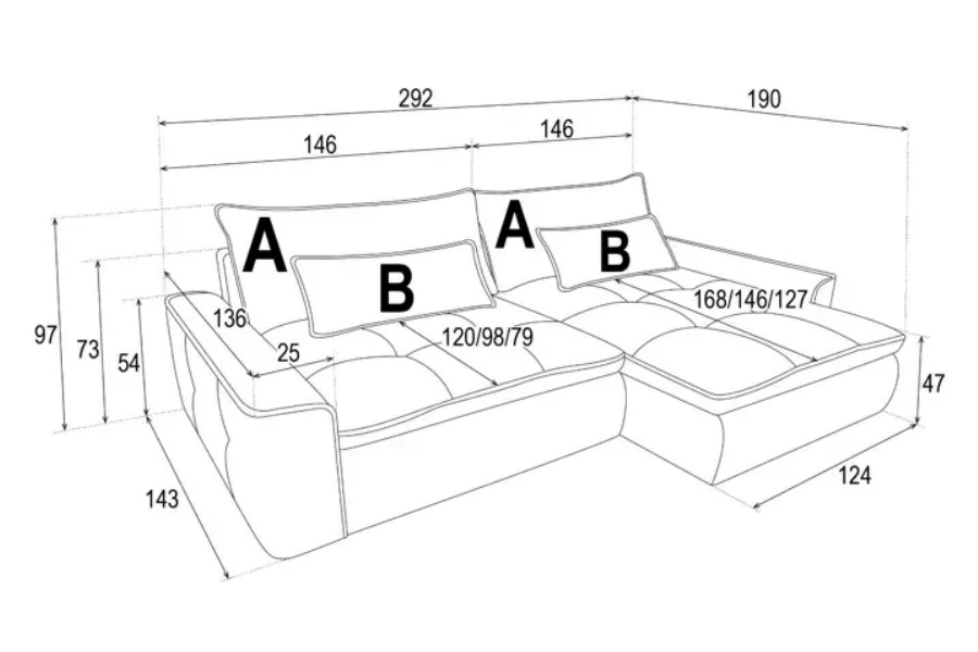 Adancime sezlong sezut: 127 / 146 / 168 cm