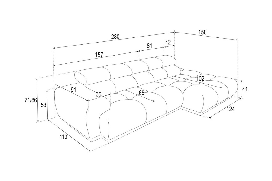 Latime sezlong: 124 cm