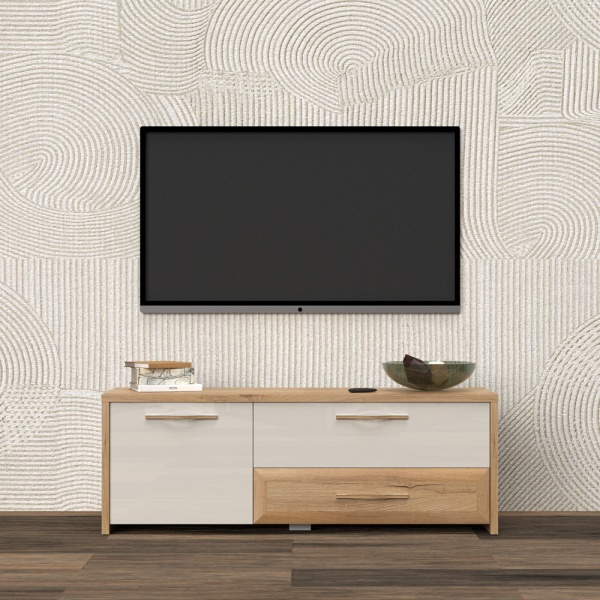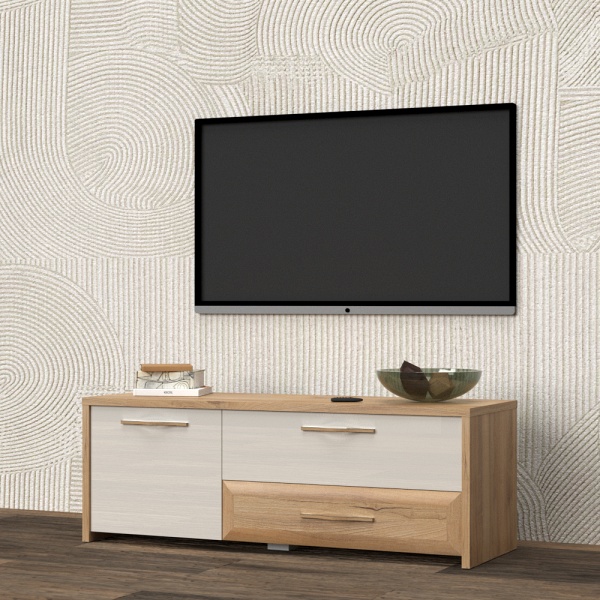 - doua sertare si o usa, decor bej lucios (lac UV) si nuc Pacific