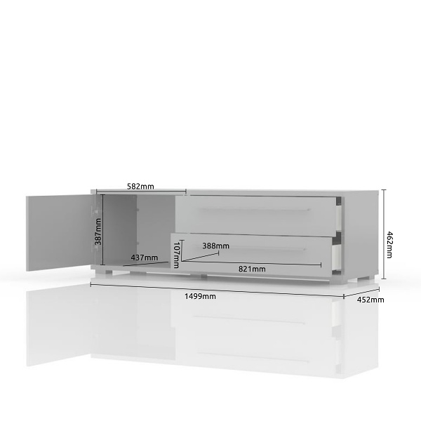 Comoda TV cu 1 usa si 2 sertare PIANO BEIGE 150x46x45cm bej lucios, manere si picioare crom