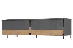 Comoda TV cu 2 sertare ONYX 152x46x45cm antracit lucios/ nuc Pacific, manere si picioare crom