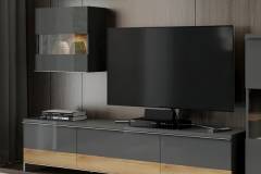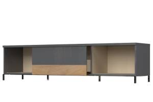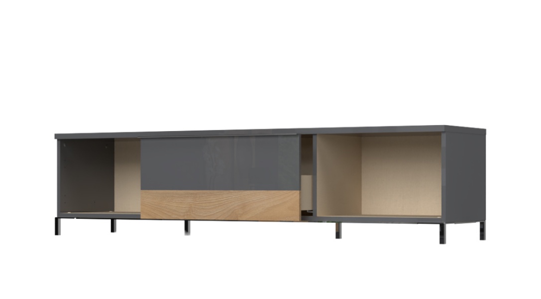Comoda TV cu 2 usi si 1 sertar ONYX 180x46x45cm antracit lucios/ nuc Pacific, manere si picioare crom