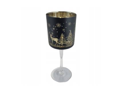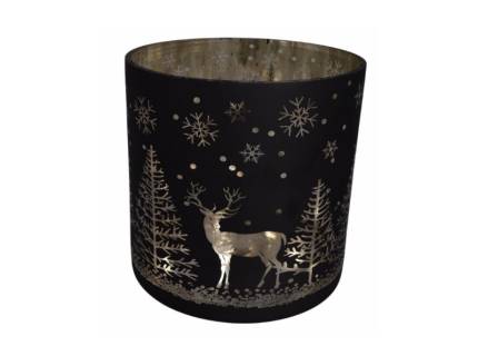 Suport lumanare mare din sticla cu ren argintiu
