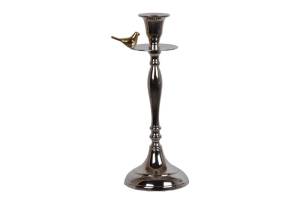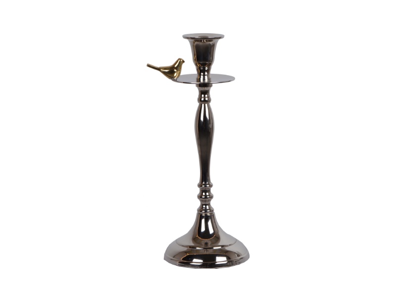 Sfesnic mare metal argintiu cu pasare 10x10x32cm