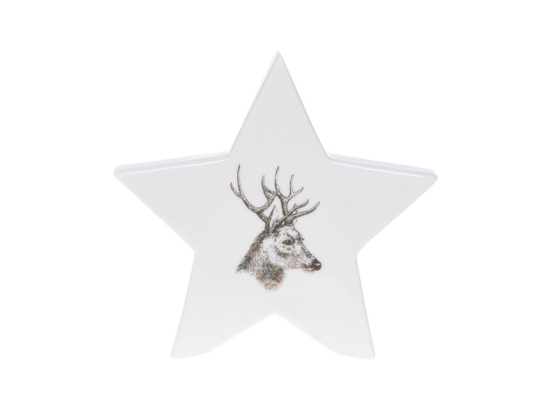 Stea din ceramica cu ren printat 12.3x2.3x12cm