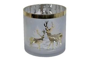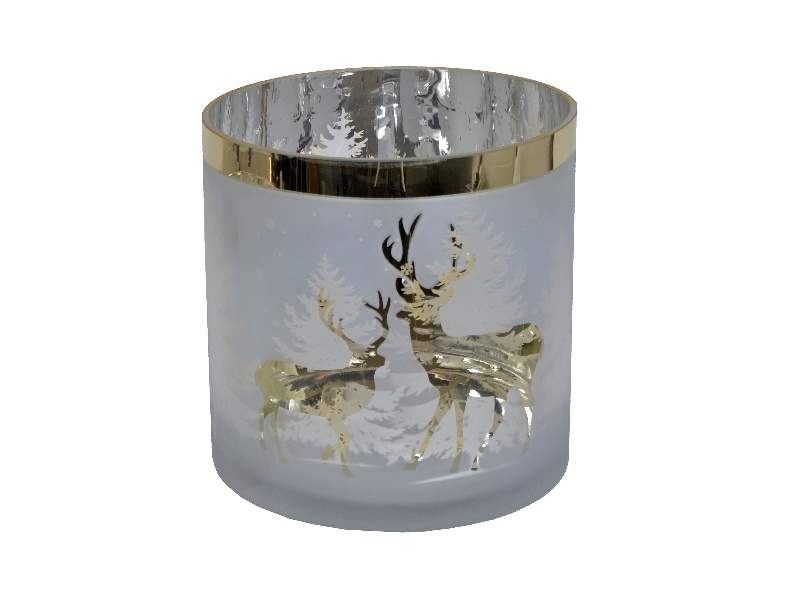 Suport lumanare mare cu ren auriu 20x20cm
