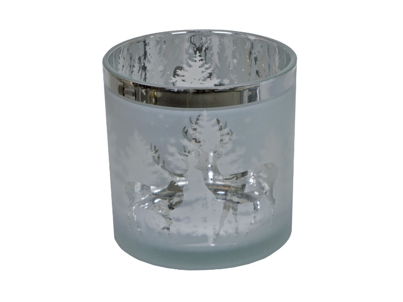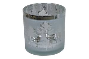 Suport lumanare mare din sticla argintiu 15x15x15cm