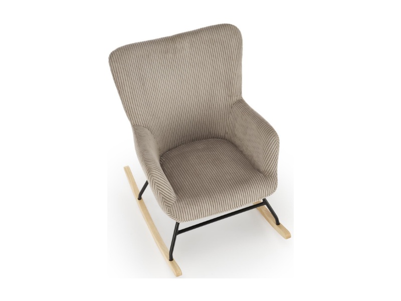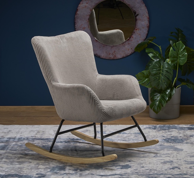 Fotoliu BELMIRO cu functie de balansare, material plusat-raiat grey, picioare nuanta lemnului + negru
