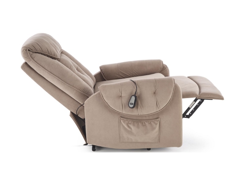 Alte specificatii: recliner electric cu actionarea prin telecomanda, buzunar lateral pt. telecomanda, functie de ridicare pentru pozitie verticala