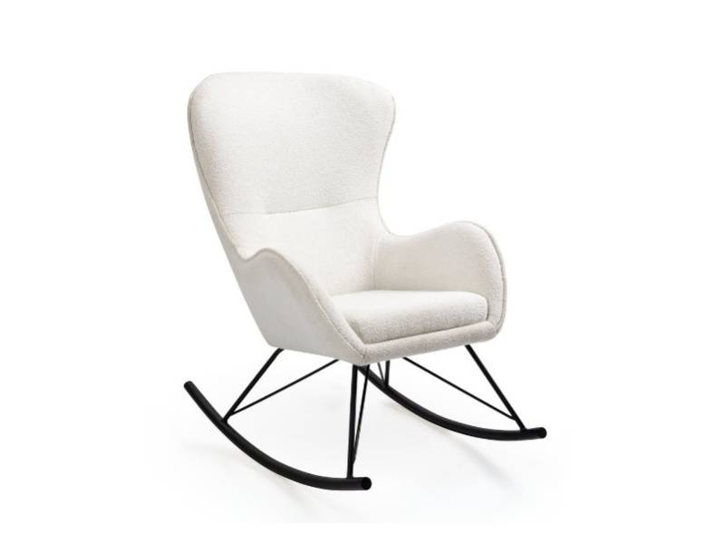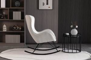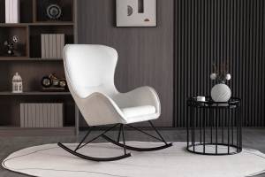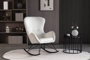 Fotoliu LIBERTO 3 cu functie de balansare, material textil-plusat alb, picioare negre 72x100xH106cm