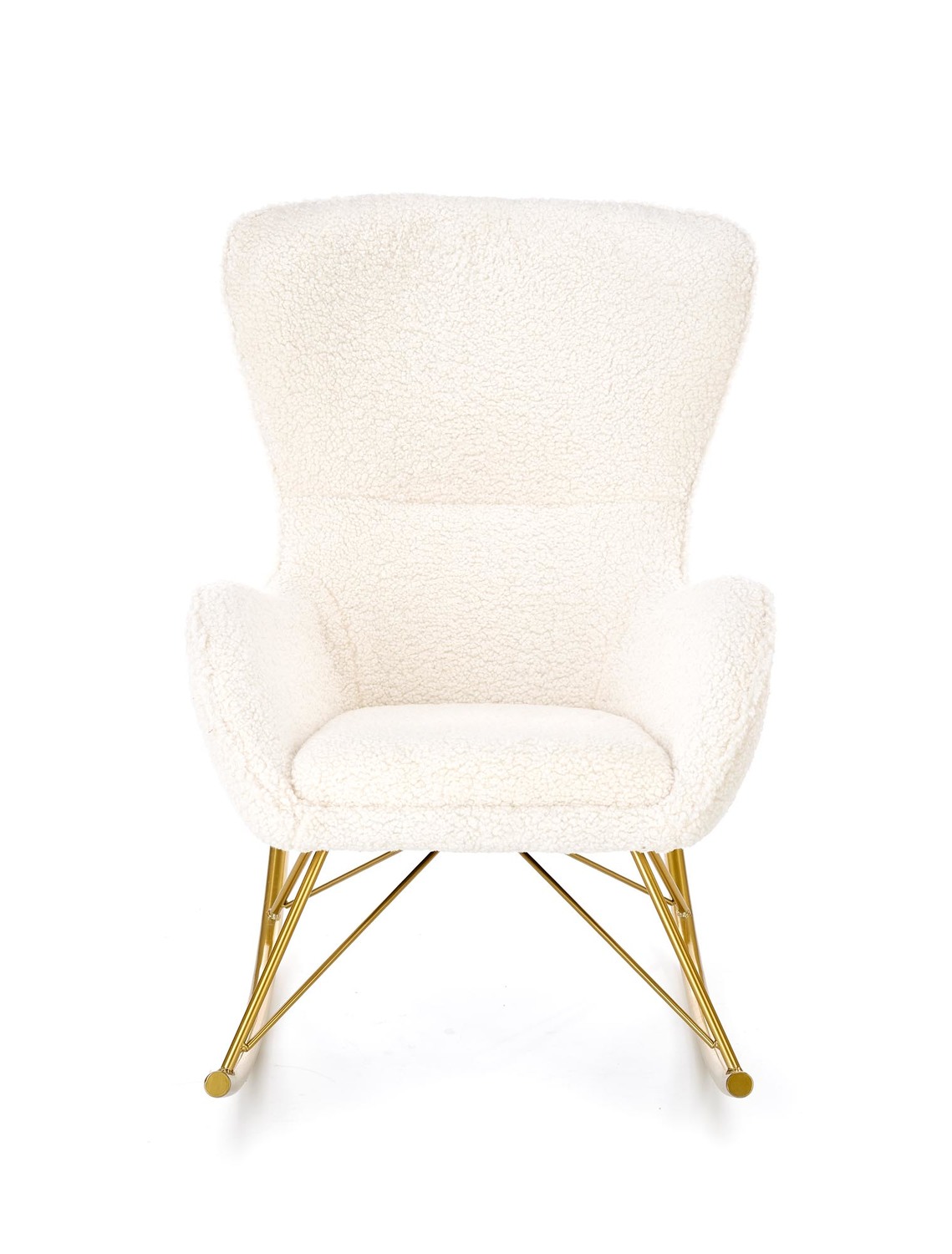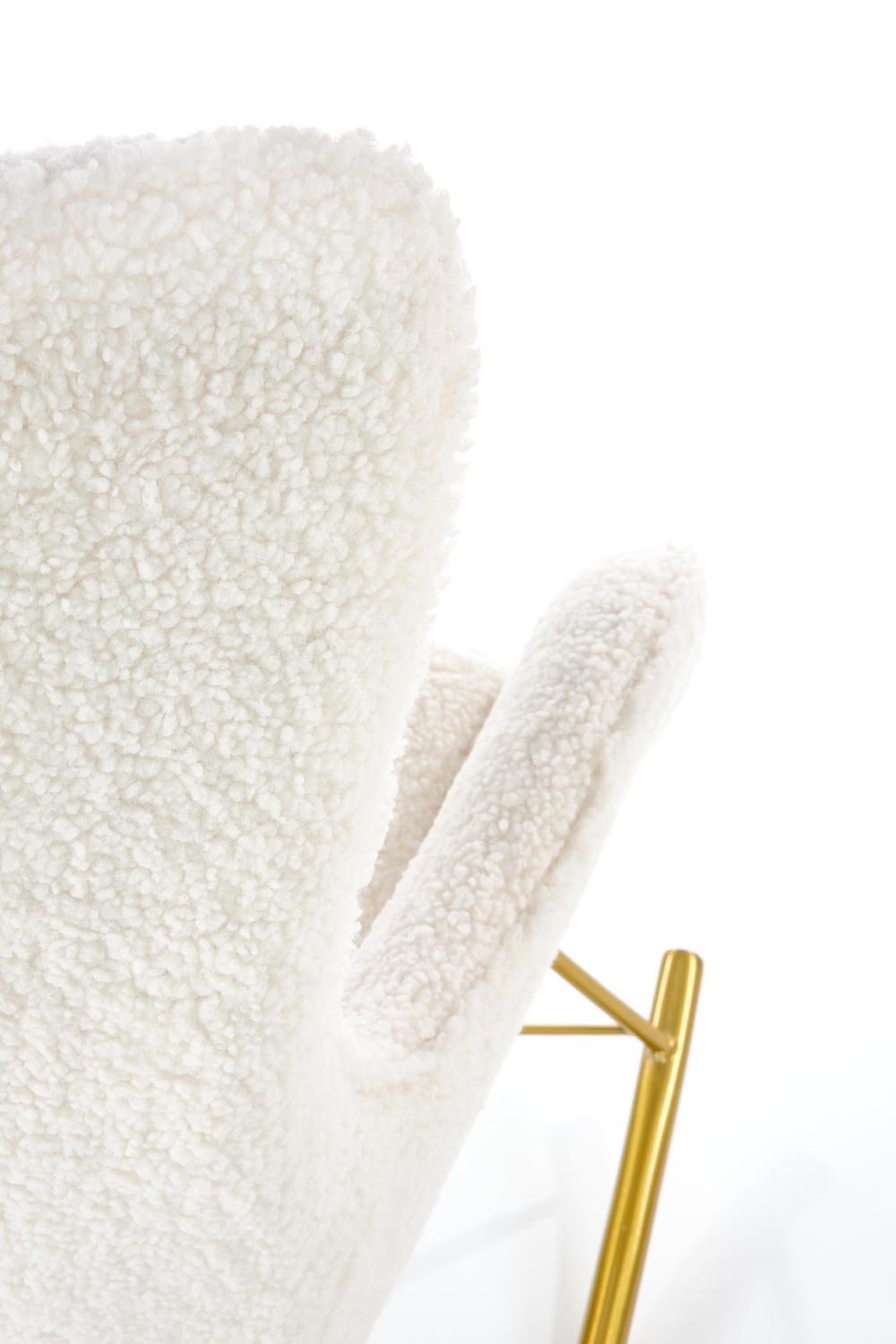 Fotoliu LIBERTO cu functie de balansare, material plusat crem, picioare aurii72x100xH106cm